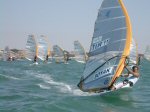 El Puerto de Santa Maria, October 4th - The more than 130 windsurfers from 24 countries gathered in Cadiz, Spain to compete in the Raceboard Worlds were faced with difficult wind conditions on the first day of racing. The first race of the day started with the wind blowing from the East (Levante) at around 20 knots, but had dropped to between 6/7 knots as the last sailors were finishing. After several hours waiting on shore, the sailors started the second race just after five o'clock with the wind blowing from the south at around 10 knots.